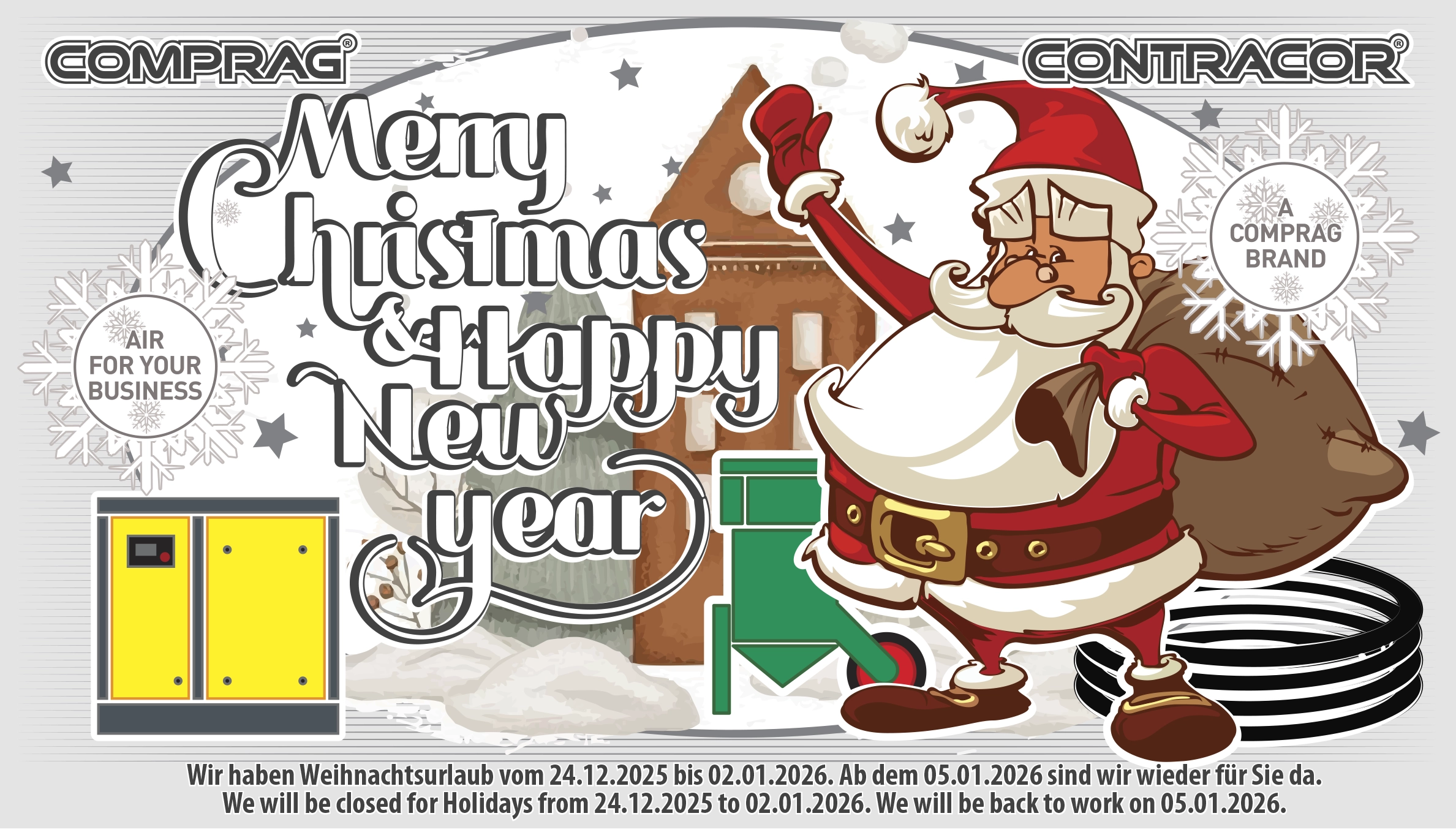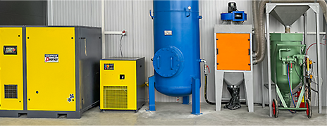 Comprag stellt ein breites Produktsortiment her von stationären Luftkompressoren, Kältetrocknern und Adsorptionstrocknern, Filter für Druckluftleitungen und Zyklonabscheider, Druckluftbehälter und Kondensatmanagementgeräte bis zu mobilen Strahlanlagen, manuellen Strahlkabinen, persönliche Schutzausrüstungen für das Sandstrahlen, mobile Nachkühler und Kondensatabscheider sowie Spezialkomponenten und Zubehör für das Sandstrahlen.