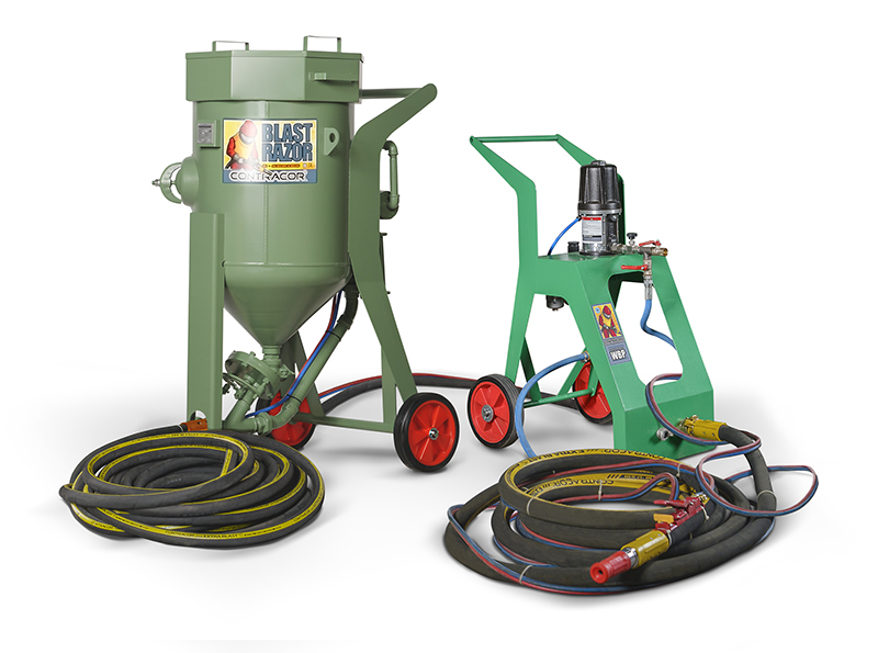 WBP Wet Blast Pumps are mounted on the portable frame and include a stainless steel air pump with 3:1 pressure ratio, compressed air filter/regulator unit, two adapters for water injection 1/2" and 1.1/4", mounted with appropriate CFT-0 and CFT-1 hose couplings.