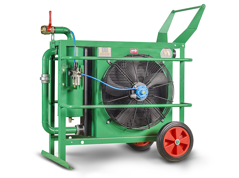 With any brand of portable and stationary screw compressor unit. Compressed air flowing from a diesel compressor has a high temperature of approximately 90°C. At such a temperature, compressed air contains a large amount of moisture in the form of steam vapour. If an aftercooler and cyclone condensate separator are not used, compressed air can add up to 21.5 litres of water per hour into the system with a compressor operating at 5.7 m3/min capacity and a pressure of 7 bar. DBP / DBE DryBlast aftercoolers of compress air cool compressed air to a temperature 3° C - 10° C higher than the ambient temperature. Once the air is cooled, vapour moisture condenses and up to 95% of condensed moisture may be eliminated from the system.