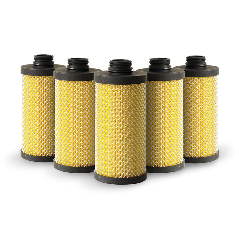 Filterelemente unterschiedlicher Filtrationsqualitäten für die Ölnebelabscheidung sowie die Adsorption von dampf- und gasförmigen Kohlenwasserstoffen.