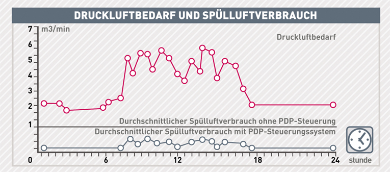 Der Druckluftbedarf eines Betriebes und die Lastsituation eines Adsorptionstrockners schwanken täglich ständig.