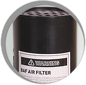 Der BAF Atemluftfilter wird verwendet, um den Strahlhelm mit sauberer Luft zu versorgen. Der BAF Filter ist auf die Entfernung von Kondensat und 98% aller Partikeln einer Grösse von 0,5 Mikrometer ausgelegt.