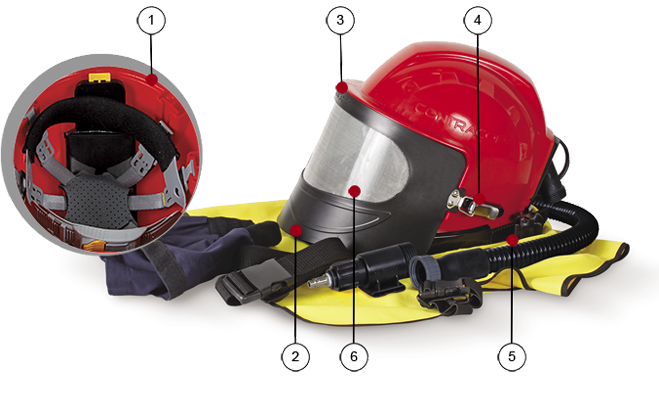 1. Das robuste äußere Gehäuse des Strahlhelms Aspect sichert eine hohe Benutzersicherheit und eine lange Lebensdauer. Ein Leitblech gewährleistet einen konstanten Luftzufluss zum Kopf und Gesicht des Benutzers um Müdigkeit und Beschlagen des Fensters zu reduzieren und die Benutzersicherheit und –Produktivität zu erhöhen.