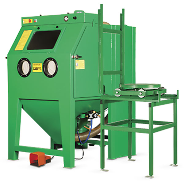 Mit einem verfahrbaren Drehtisch auf Schienen können schwere und sperrige Werkstücke sicher in die Strahlkammer ein- und ausgefahren werden. Durch den sicheren und praktischen Zugang zu schwerzugänglichen Stellen am Werkstück können deutliche Produktivitätssteigerungen erzielt werden. Die Strahlkabinen des Typs ST werden zusätzlich zu der Standardausführung mit mobilem Drehtisch TTM-500 / TTM-800 mit Schienensystem und mit Innenwandverkleidung aus Gummi geliefert.