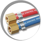Die Fernbedienung dient dem Ein- und Ausschalten der Strahlanlage durch einen einzelnen Bediener. Das Fernbedienungssystem umfasst ein RCV Fernbedienungsventil sowie einen DMH Handhebel, die über einen Doppelschlauch miteinander verbunden sind.