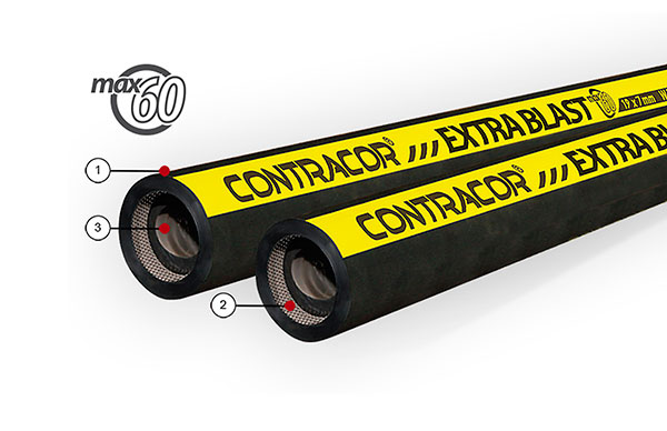 Wear-resistant, electric conductive blasting hoses Suitable for any kind of abrasive blasting job. Hose inner tube is made of highest abrasion resistance natural rubber.